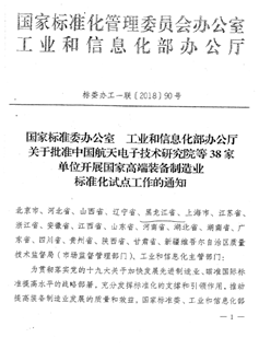 國家標(biāo)準(zhǔn)委及工信部批復(fù)我公司開展國家高端裝備制造業(yè)標(biāo)準(zhǔn)化試點工作